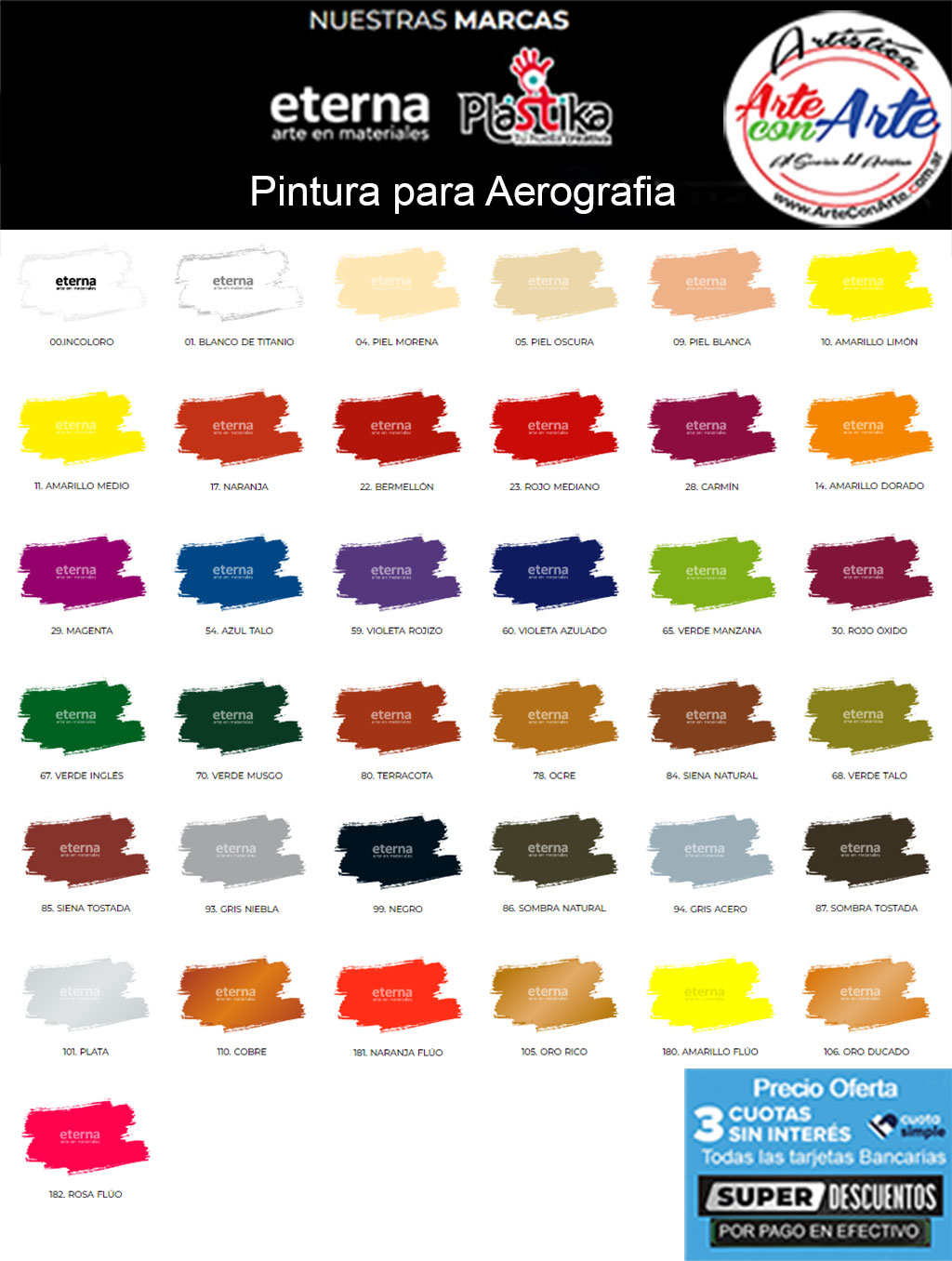 compuesta por colores comunes, flúo y metalizados.