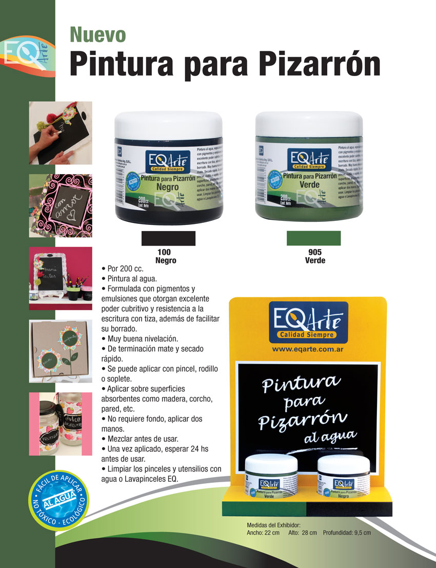 Nuestra Pintura Pizarrón es acrílica, al agua, mate y sin olor para crear espacios sobre los cuales escribir con tiza, borrar y volver a escribir.