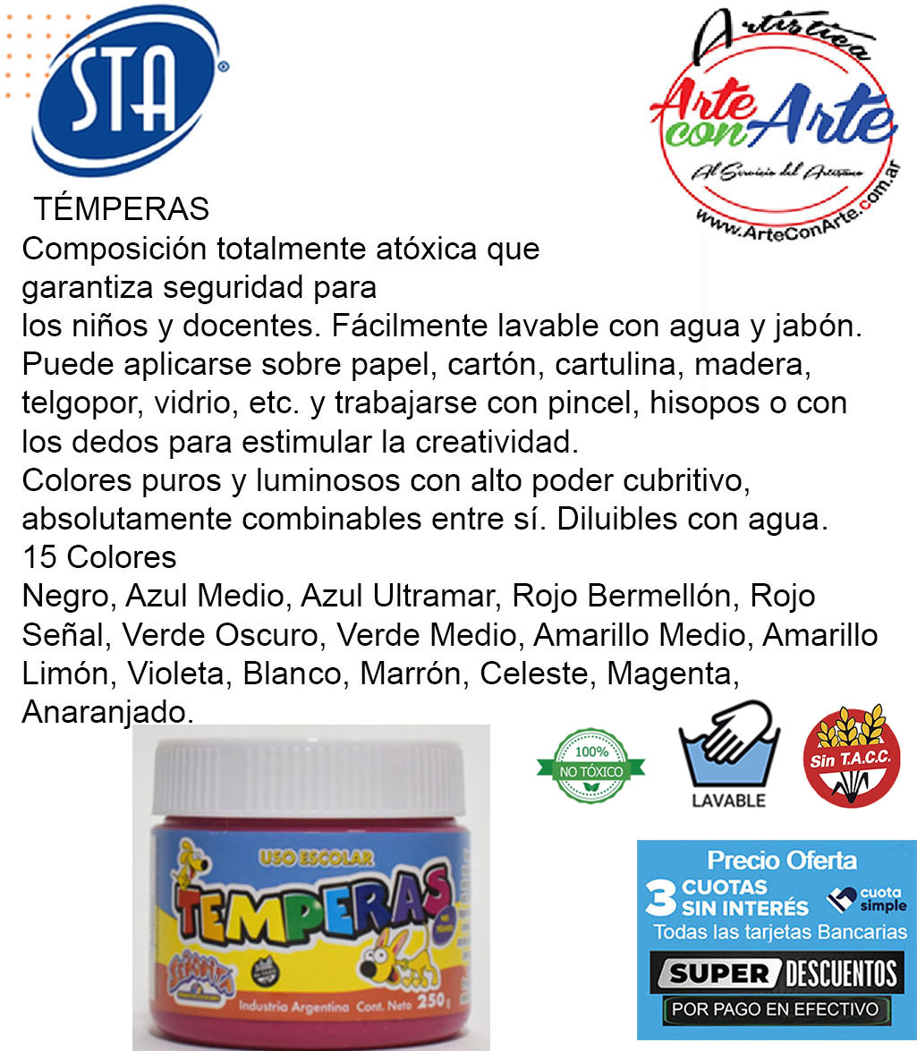 TEMPERA ESCOLAR STA 250CC COLORES CLASICOS
