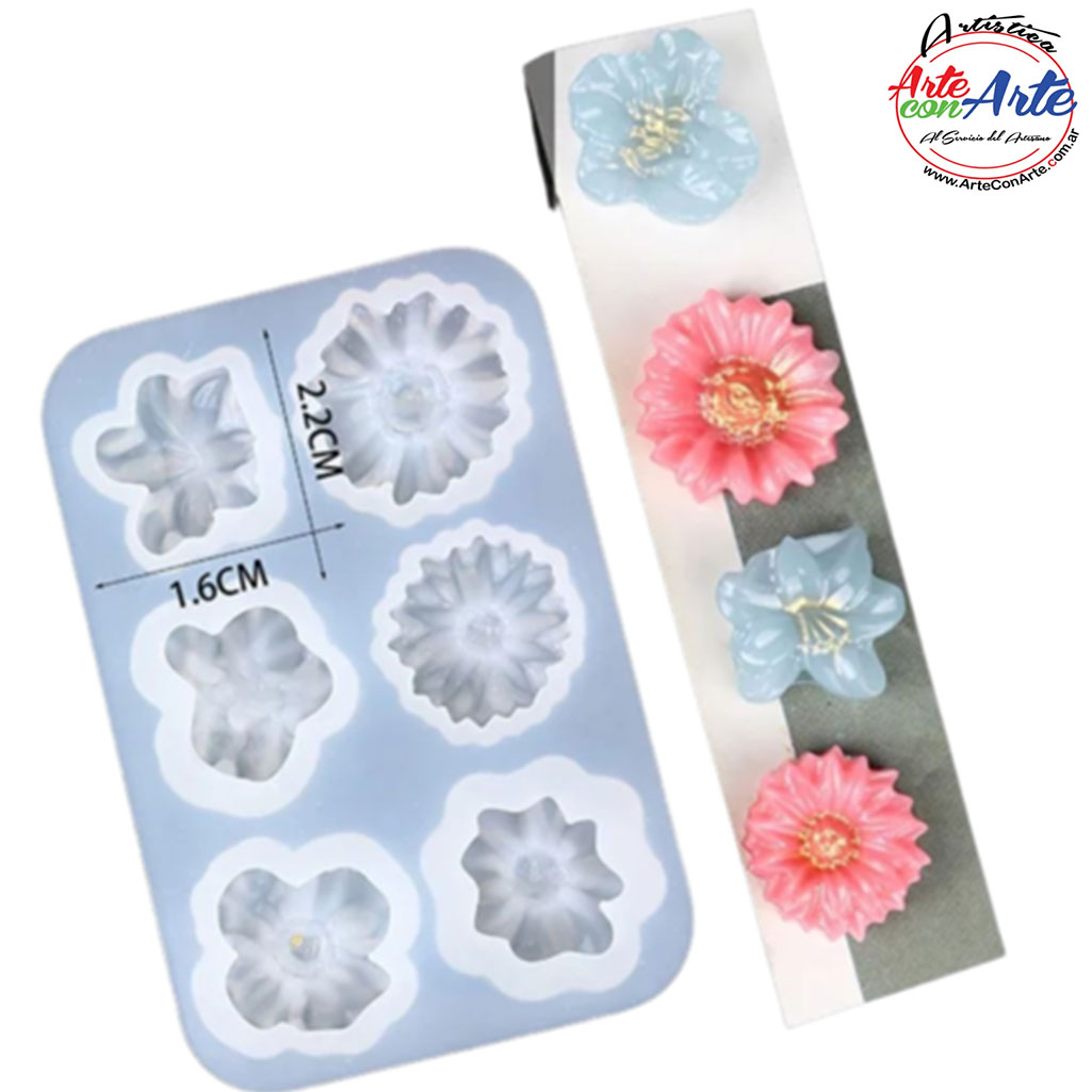 MOLDE SILICONA MS0254 - 6 FLORES DIFERENTES - 4 GRANDES 2 MIN |