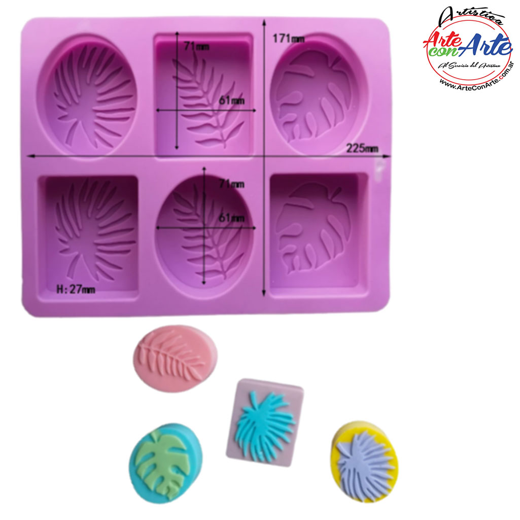 MOLDE SILICONA MS0289 - 6 JABONES RECTANGULO HOJAS |