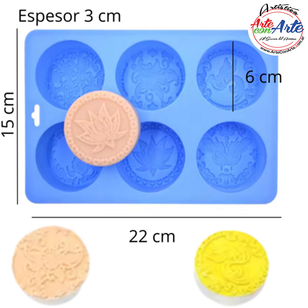 MOLDE SILICONA MS0206 - PLANCHA JABONES 4 CIRCULOS X 6CM |