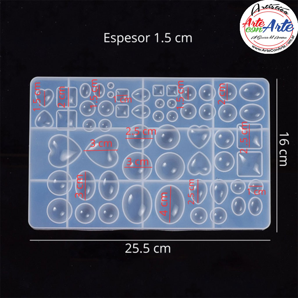 MOLDE SILICONA MS0299 - 60 FORMAS CORAZONES CIRCULOS CUADRADOS |